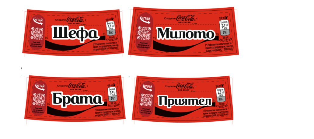 Coca‑Cola Без Захар 1L- 6 дизайна на промоционални етикета с Никнейми: