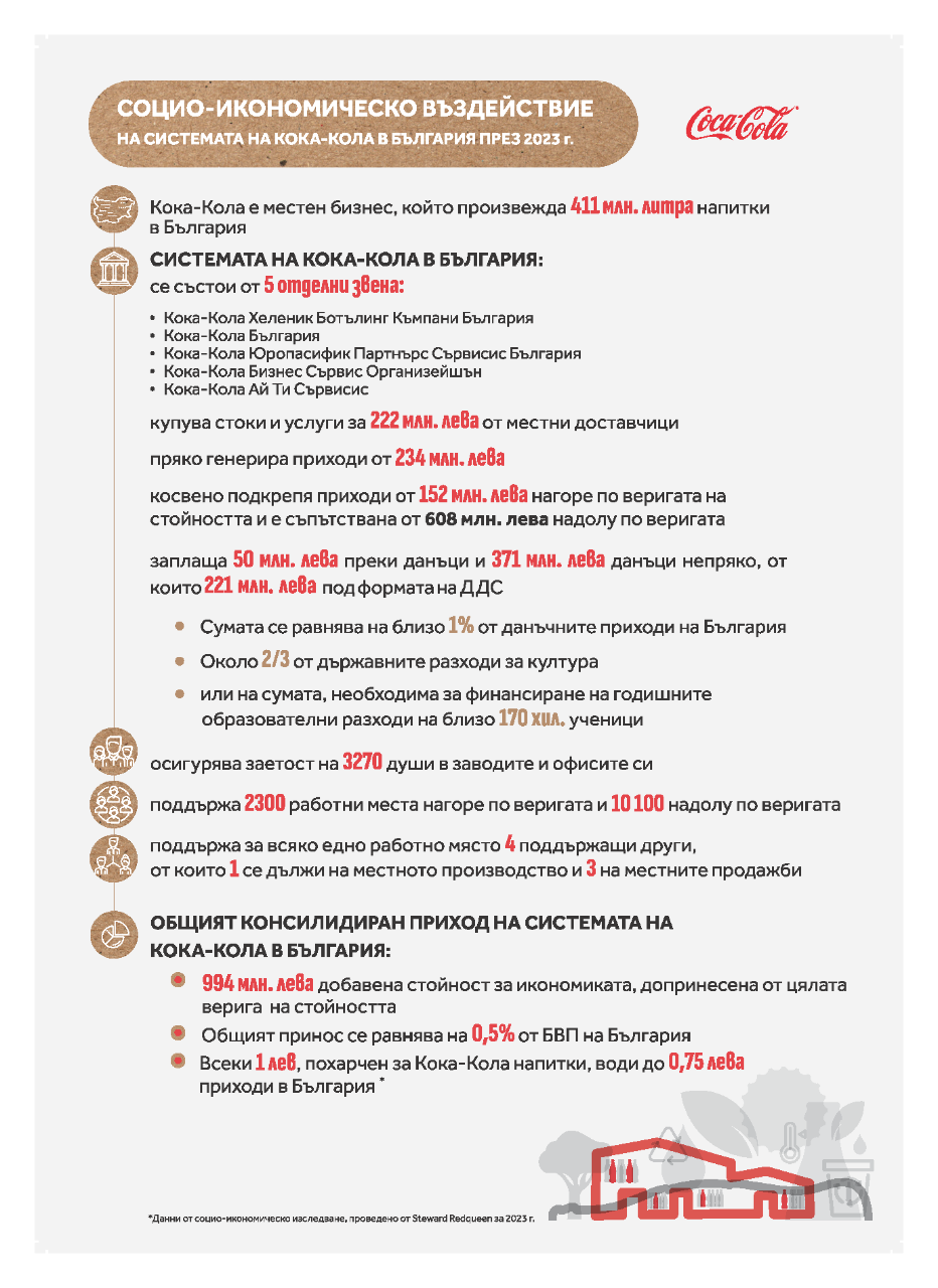 Детайли за социо-икономическото въздействие на Системата на Кока-Кола в България за 2023 г. може да намерите тук.
