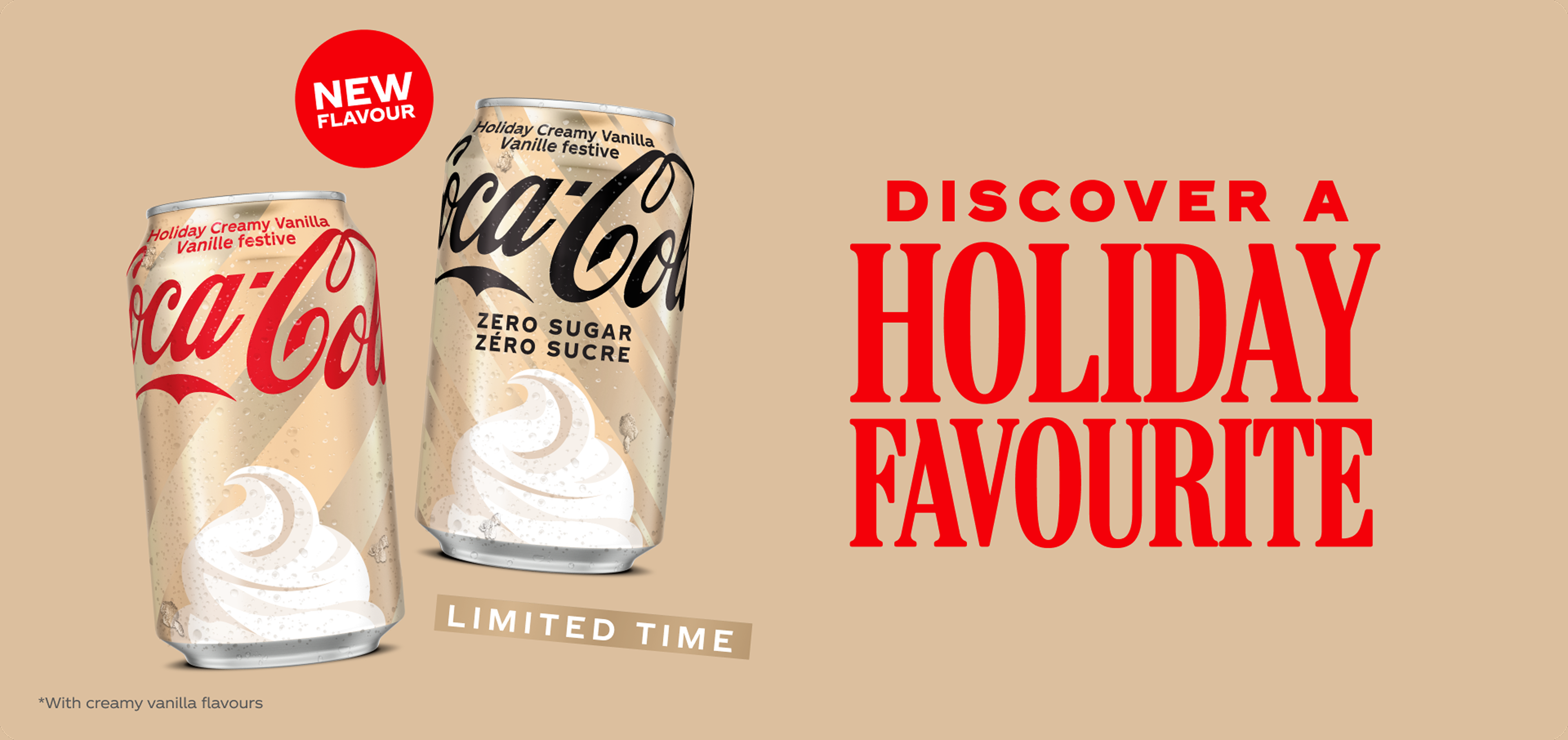 Refresh your holidays with this limited-time flavour! Coca‑Cola Holiday Creamy Vanilla soda delivers the Coca‑Cola taste you love with a smooth, creamy vanilla flavour. Pop open a bottle, pour it over ice, and let the festive vibes flow.