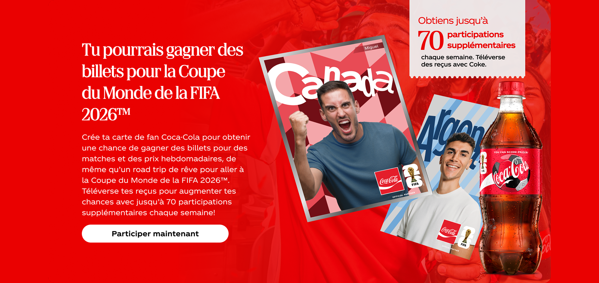 Scanne le code sur les produits Coca‑Cola participants et cours la chance de gagner du swag des Jeux olympiques d’hiver Coca‑Cola & Équipe Canada de cette année.