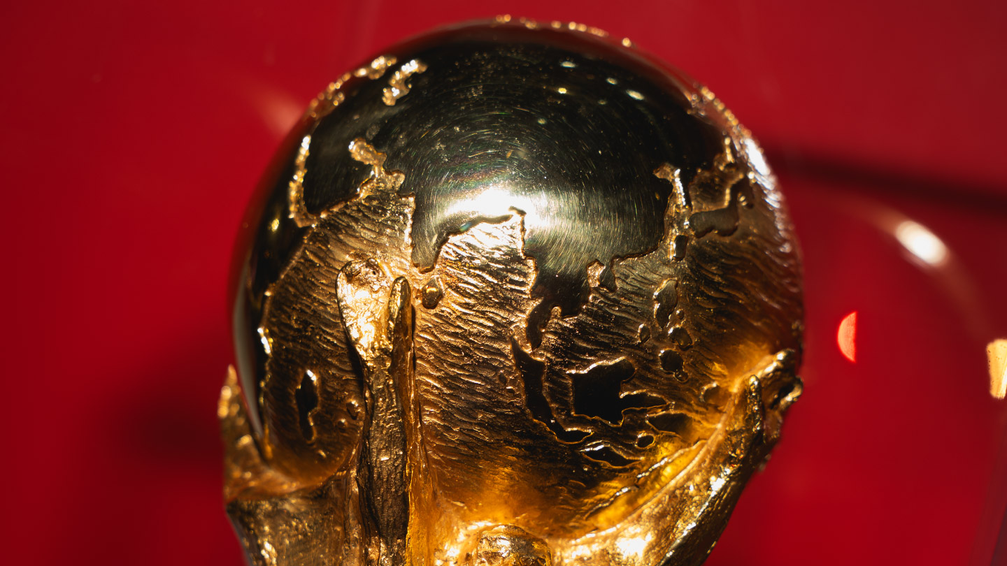 El Trofeo Original de la Copa Mundial de la FIFA 26™ está hecho de oro macizo y pesa 6,175 kg. Su diseño, vigente desde 1974, representa dos figuras humanas sosteniendo el globo terráqueo. Únicamente excampeones mundiales, Jefes de Estado y el Presidente de la FIFA™ pueden tocar el legendario trofeo.