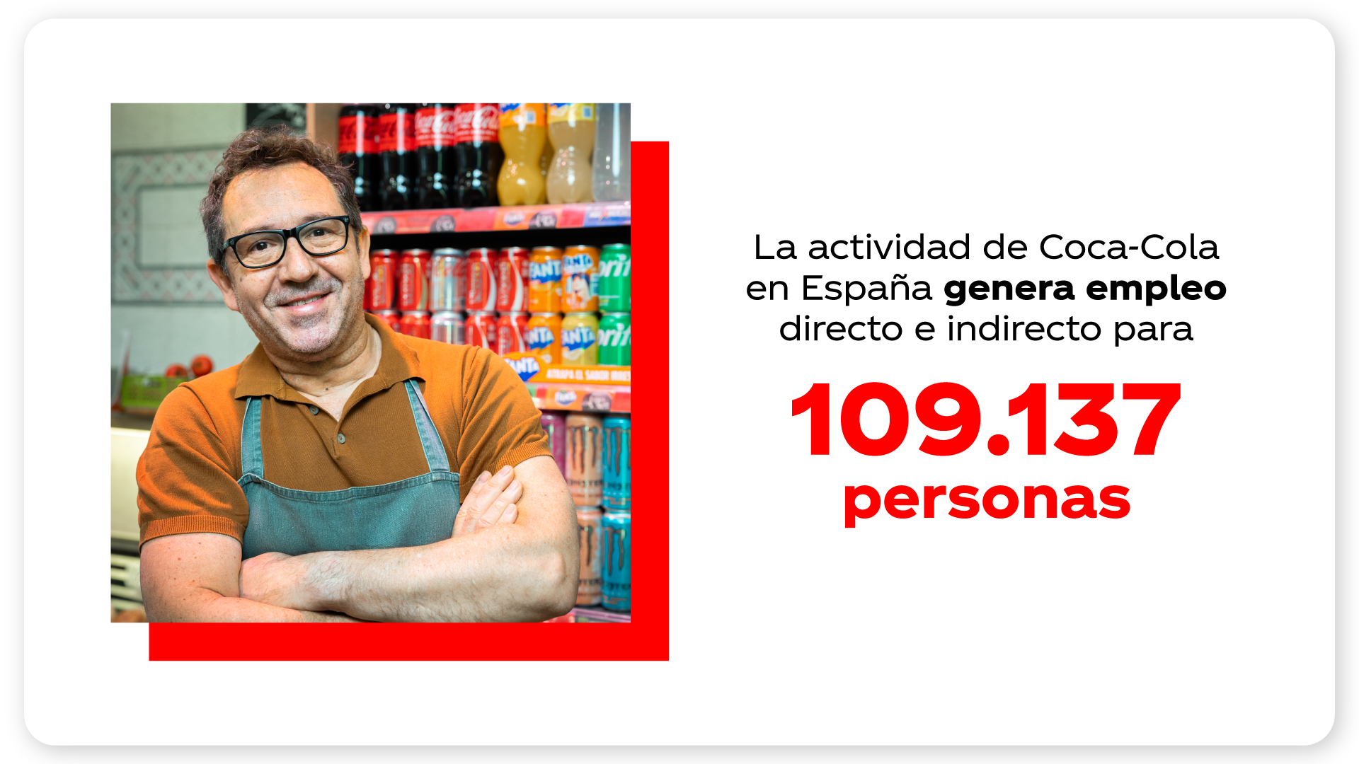 La actividad de Coca‑Cola en España se construye gracias a su poderosa fuerza industrial y la capilaridad de su sistema de distribución y equipo de ventas, con todos los puestos de trabajo asociados que se crean gracias a ello. De esta forma está presente en la práctica totalidad de los 8.132 municipios que se distribuyen a lo largo del país.