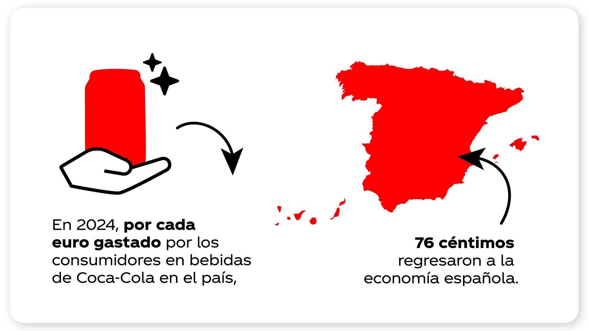 Lo que empezó siendo una aspiración, una meta que deseábamos alcanzar para tener la oportunidad de devolver a nuestros clientes parte de lo mucho que nos dan cada día al confiar en nosotros, se convertía hace unos años en una realidad que volvemos a revalidar. Un éxito que queda demostrado en la nueva edición del Estudio de Impacto Socioeconómico realizado por la consultora Steward Redqueen en 2024 en el que, entre otros aspectos, se adentra en el impacto que tuvieron los cerca de 9.200 millones de euros que gastaron nuestros consumidores en bebidas de Coca‑Cola al comprar 2.900 millones de litros.