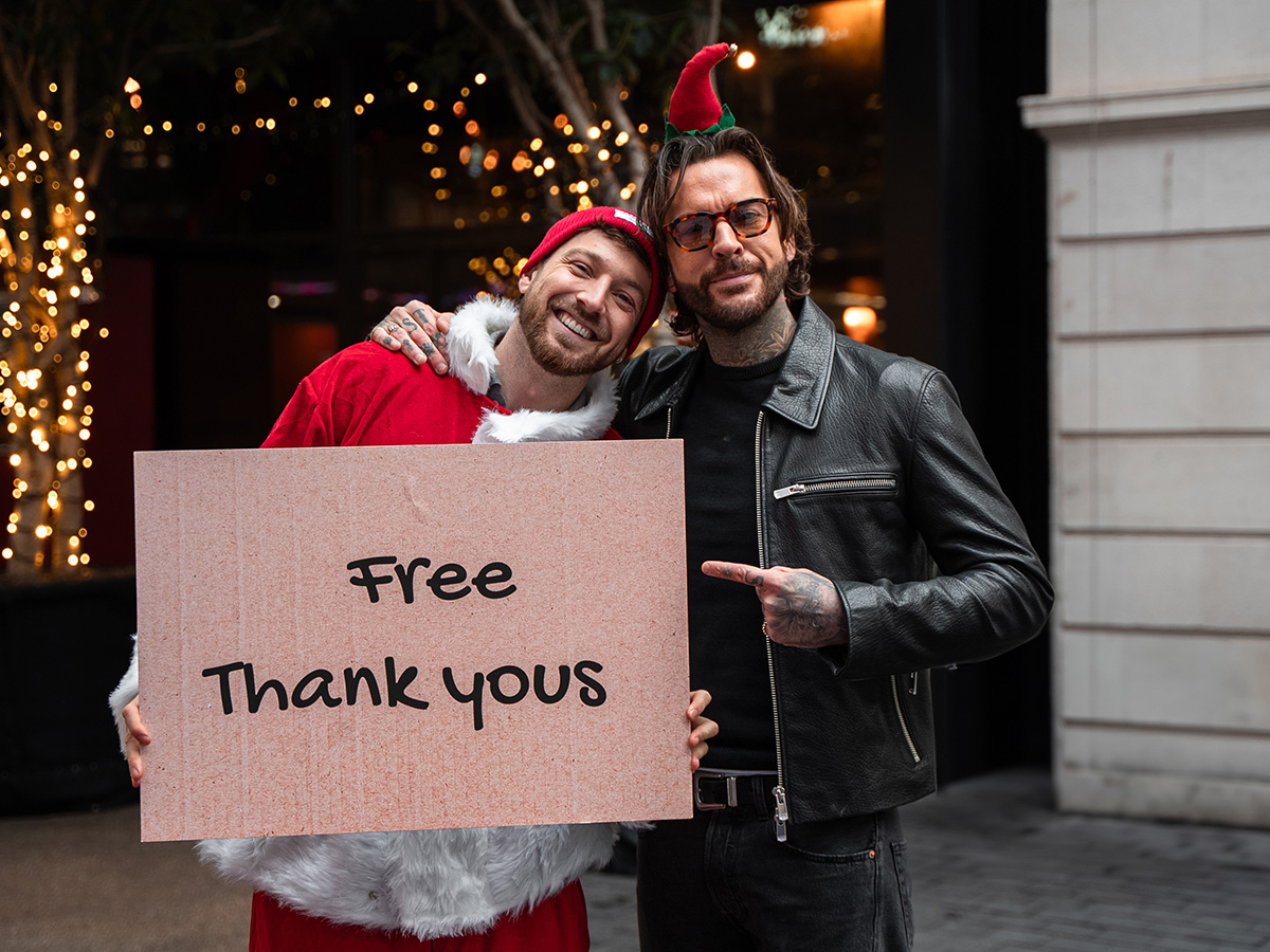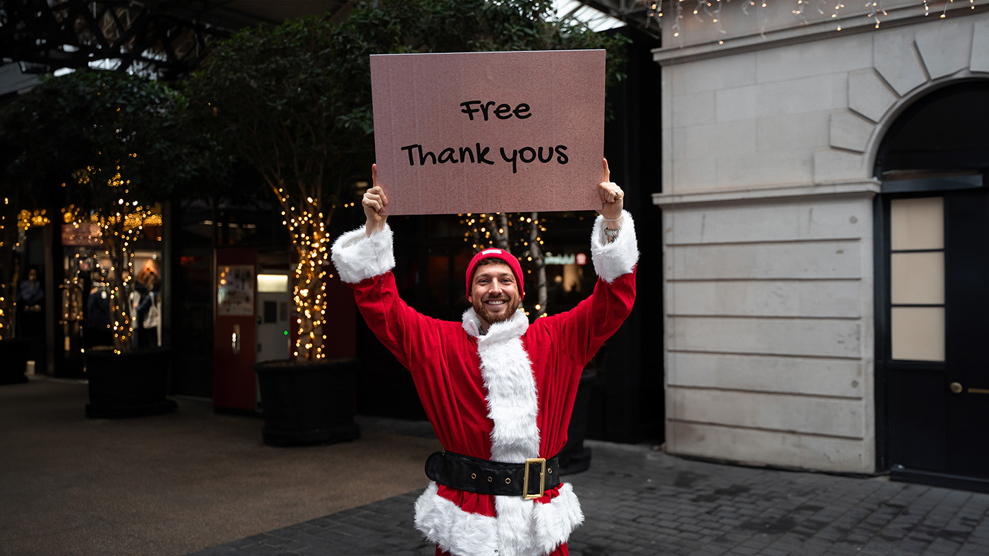 Kicking off this initiative, Sam Thompson, surprised excited members of the public at Spitalfields, London, dressed as Santa, to launch his 'Free Thank Yous’ station. Holding fun and playful signs, Sam invited passers-by to nominate their special Christmas Maker. He then personally rang, video called or sent video messages to unsuspecting Makers, delivering a surprise, personalised thank you on behalf of their loved ones.