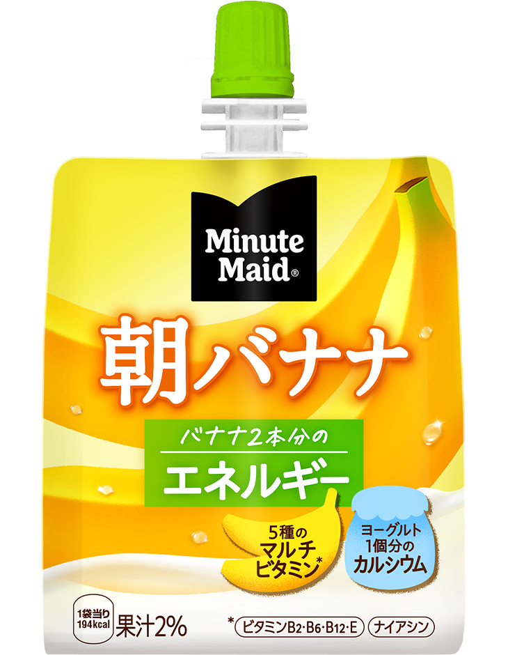 いつもの朝に、バナナ2本分のエネルギーで手軽にきちんと栄養補給ができる、健康的なゼリー飲料です。