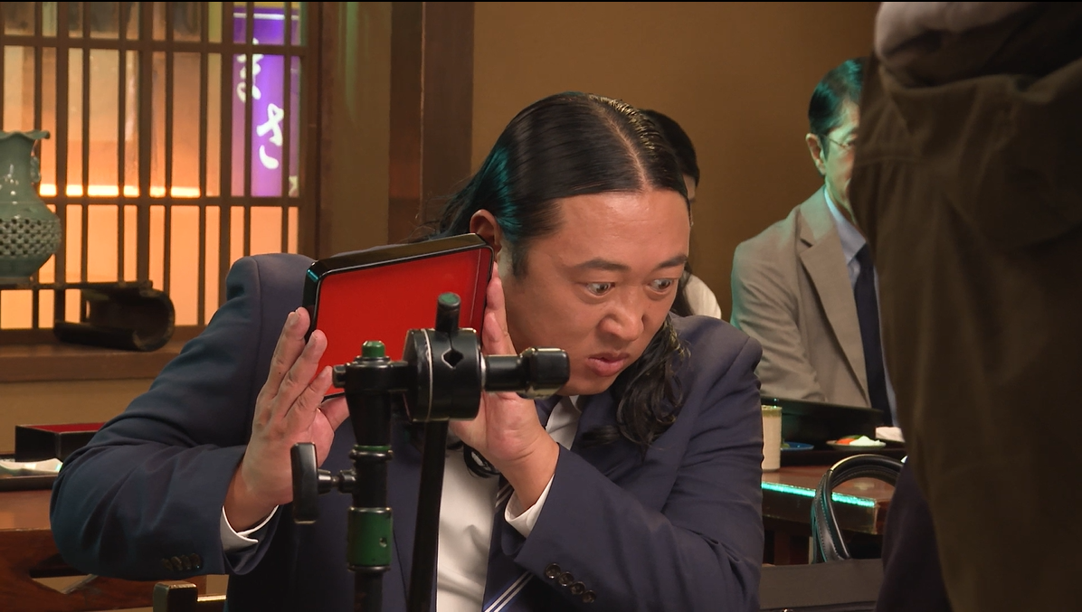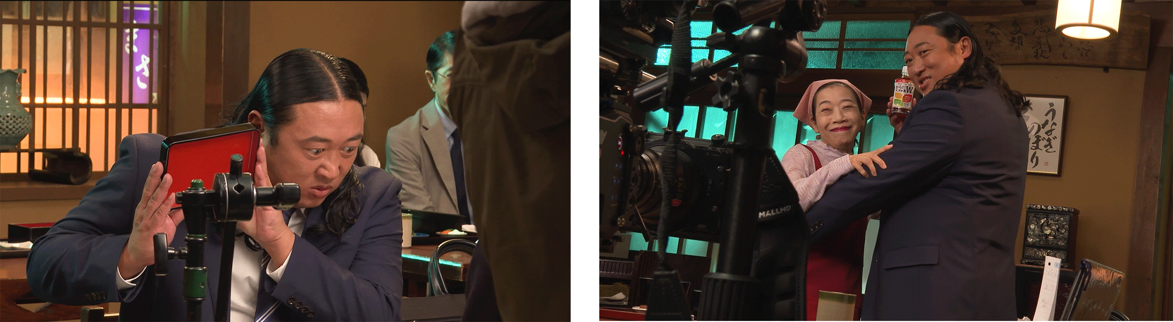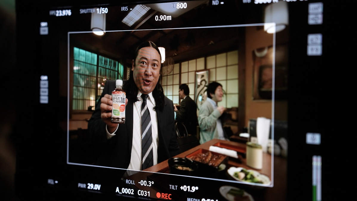 CM撮影は都内スタジオの鰻屋セットで行われました。サラリーマン役の秋山さんは、“小悪魔W”に翻弄される姿を、得意の顔芸と細かな表情でコミカルに表現。カメラが回った瞬間から存在感を放ち、秋山さんの第一声には思わずスタッフから拍手が起こるほどでした。食事を頬張るシーンや「からだすこやか茶W+」を飲むカットでは、表情だけで“美味しさ”が伝わり、スタッフも思わず「美味しそう…」と漏らすほど。さらに、鰻屋の女将とのダンスシーンでは、軽快なリードで息ぴったりの掛け合いを見せ、終始笑顔の絶えない撮影となりました。