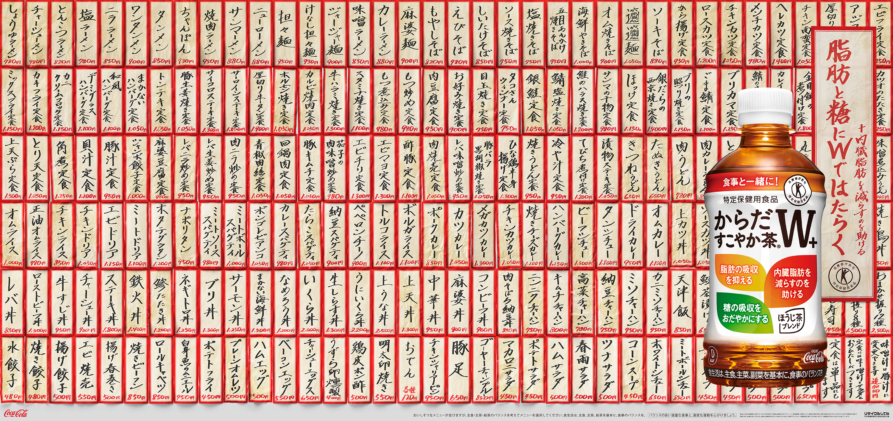 コカ・コーラシステムは、脂肪と糖にはたらき、さらに内臓脂肪にもトリプルではたらく植物由来の食物繊維・難消化性デキストリンを関与成分として配合した特定保健用食品(以下、トクホ)「からだすこやか茶W+(ダブルプラス)」において、1月19日(月)より製品パッケージをリニューアルして発売します。また、新たに人気お笑いトリオ・ロバート秋山竜次さんをブランドアンバサダーに起用し、“脂肪と糖は好きですか?” をキーメッセージに、新CM『小悪魔W』篇を同日より全国で放映開始。さらに、デジタル広告、OOHなどを順次展開します。
