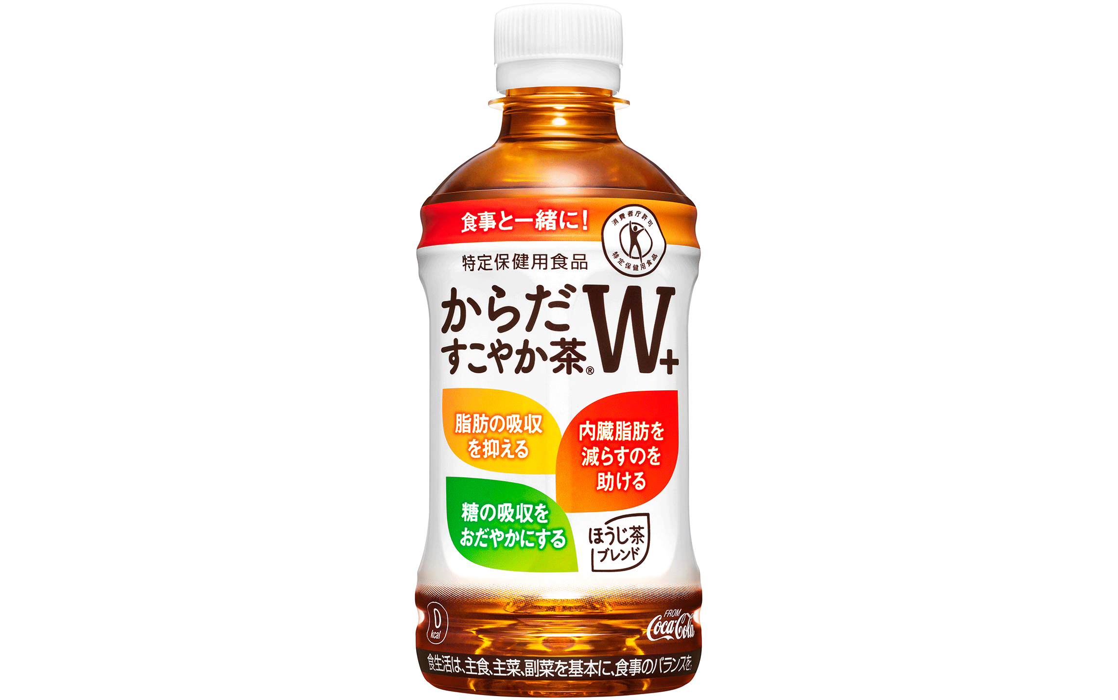 「からだすこやか茶W+」は、植物由来の食物繊維・難消化性デキストリンの働きにより、「脂肪の吸収を抑え、糖の吸収をおだやかにし、内臓脂肪を減らすのを助ける」という3つの働きをもつ初のトリプルトクホ※のブレンド茶です。脂肪や糖が気になる方に、毎日の食事と一緒に同製品を楽しんでいただきたいという思いから、「食事と一緒に!」というメッセージを新たに追加し、パッケージデザインを1月19日(月)よりリニューアルしました。どんな食事やデザートにも合わせやすいすっきりとしたほうじ茶ブレンドの味わいをお楽しみいただけます。