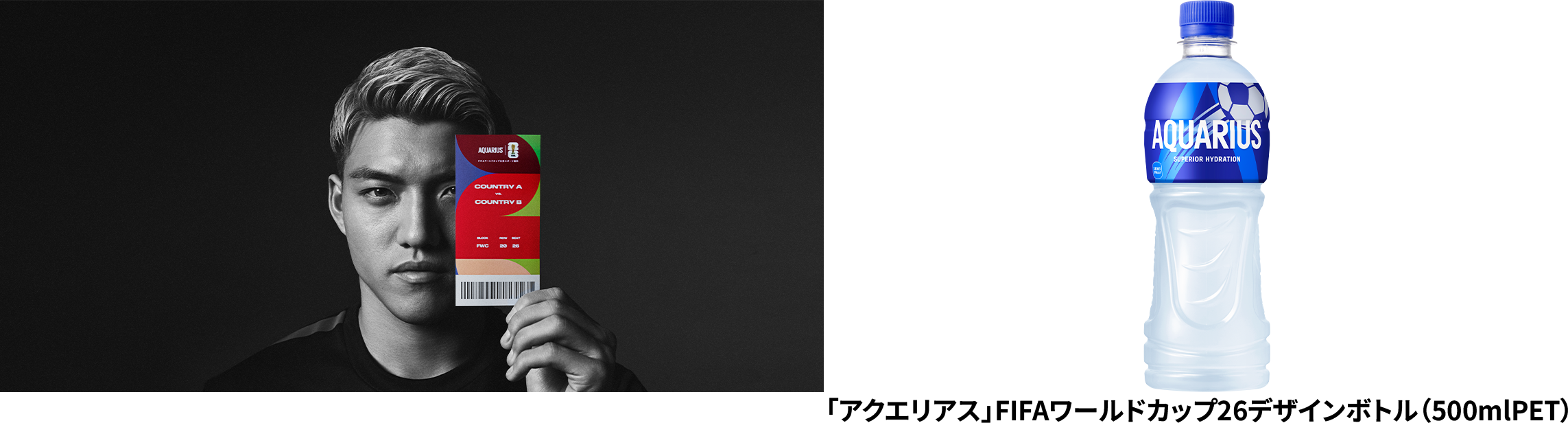 FIFAワールドカップ26の開催を記念し、ラベルデザインにサッカーボールとFIFAワールドカップ26オフィシャルパートナーのロゴを記載した「アクエリアス」FIFAワールドカップ26デザインボトルを期間限定で発売します。