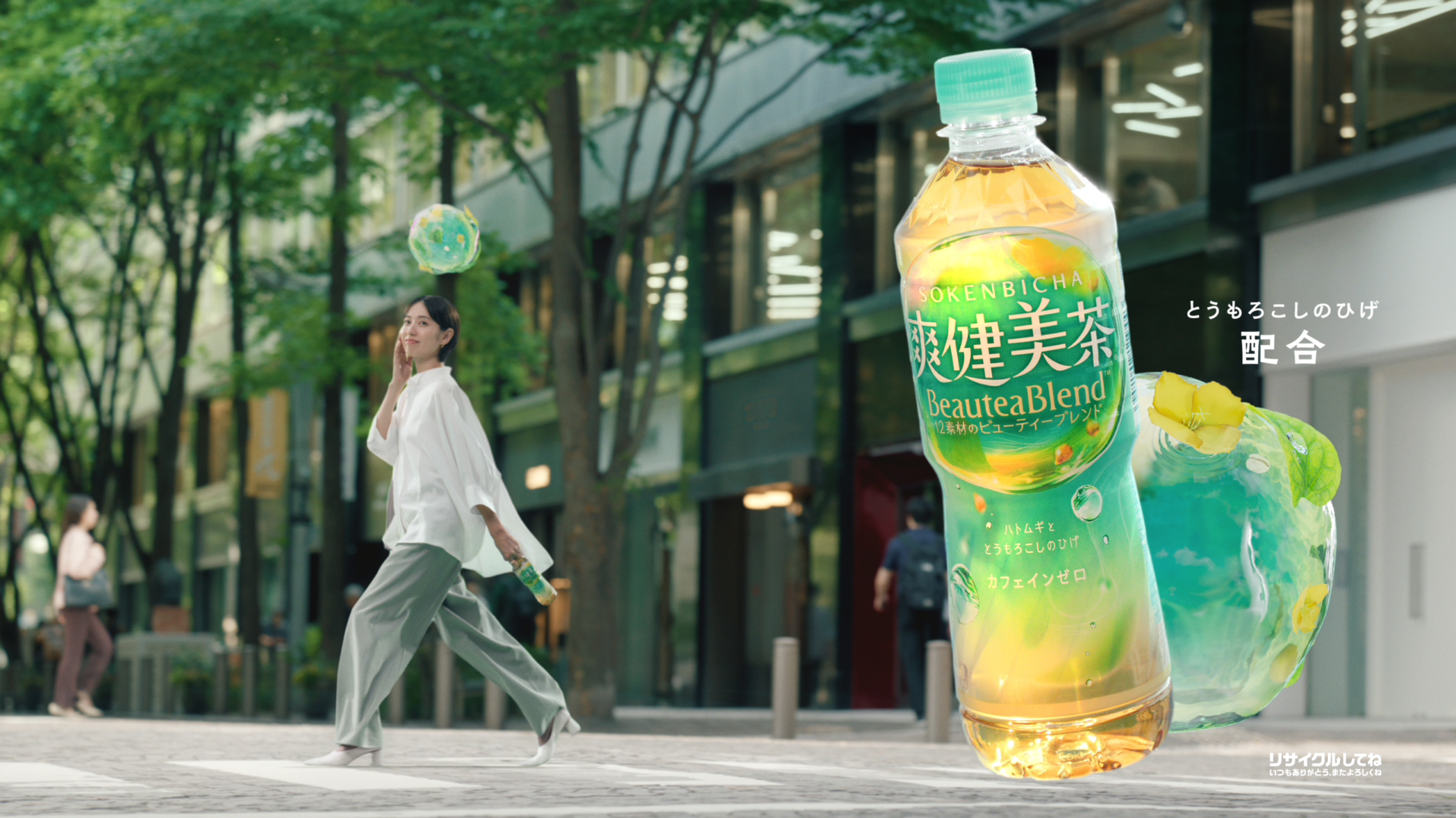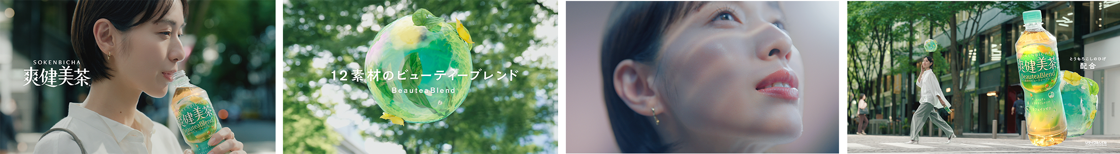 「爽健美茶」を飲むことで心身ともにみずみずしく潤されるような様子で、厳選12素材による“BeauteaBlend™(ビューティーブレンド)”としての魅力をより強化して発信していきます。