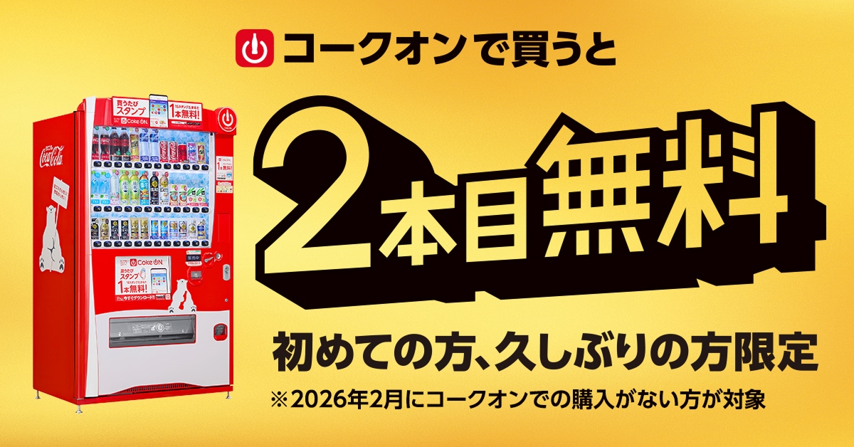 対 象:Coke ON対応自販機で「Coke ON」を利用した製品購入のない方、または過去に購入いただいたが2026年2月に「Coke ON」を利用した購入のなかった方