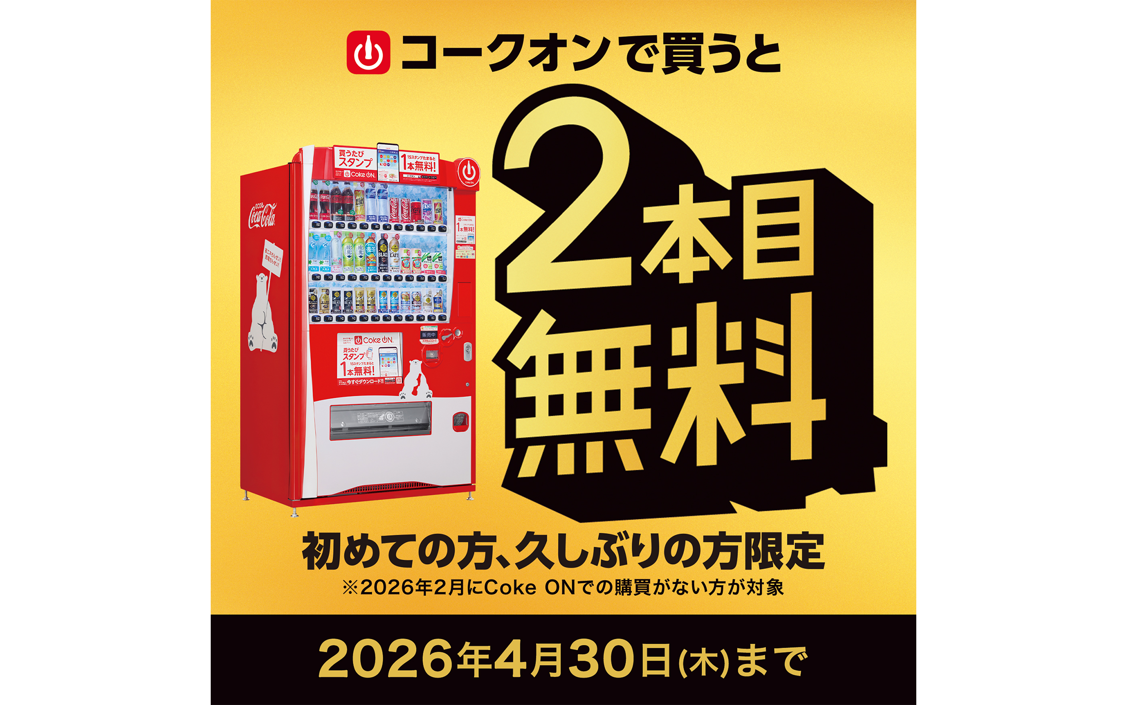 日本コカ・コーラ株式会社(本社:東京都渋谷区、代表取締役社長:ムラット・オズゲル)は、コカ・コーラ公式アプリ「Coke ON」が2026年にサービス開始10周年を迎えることを記念して、大型キャンペーンをスタートします。その第一弾として、「1本買うと2本目無料!」キャンペーン※1を、2026年3月1日(日)から4月30日(木)まで実施します。