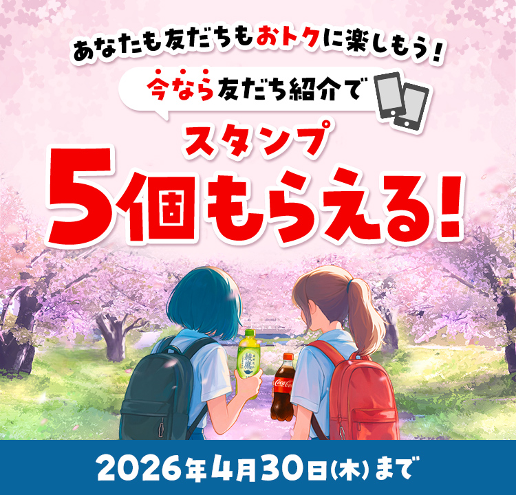2026年3月1日(日)から4月30日(木)までの期間中、お友だちを紹介いただくと、紹介の特典として付与するスタンプ数を、通常3つから5つに増量します。