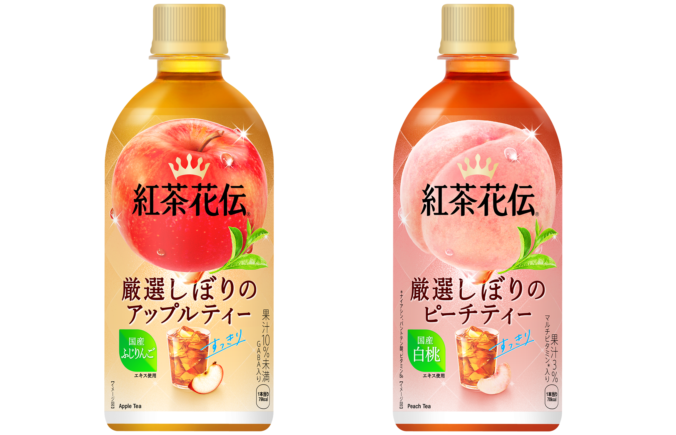 3月2日(月)より、厳選したフルーツの果汁感とすっきりとした後味が特長の新フルーツティー2製品「紅茶花伝 厳選しぼりのピーチティー」「紅茶花伝 厳選しぼりのアップルティー」を全国にて発売します。本製品は、紅茶の香りや味わいとフルーツ本来のおいしさにこだわり、よりすっきりとしたリフレッシュを届けるフルーツティーの新シリーズです。