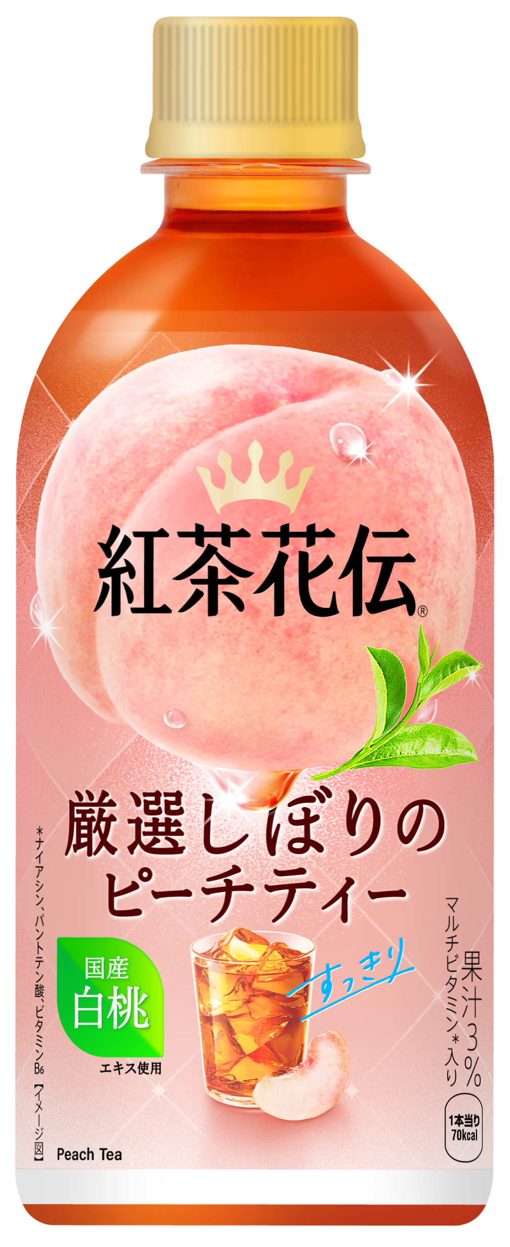 ■原材料名:砂糖(国内製造)、もも果汁、紅茶、モモエキス/香料、ビタミンC、酸味料、クチナシ赤色素、甘味料(アセスルファムK、スクラロース)、パントテン酸Ca、ナイアシン、ビタミンB6