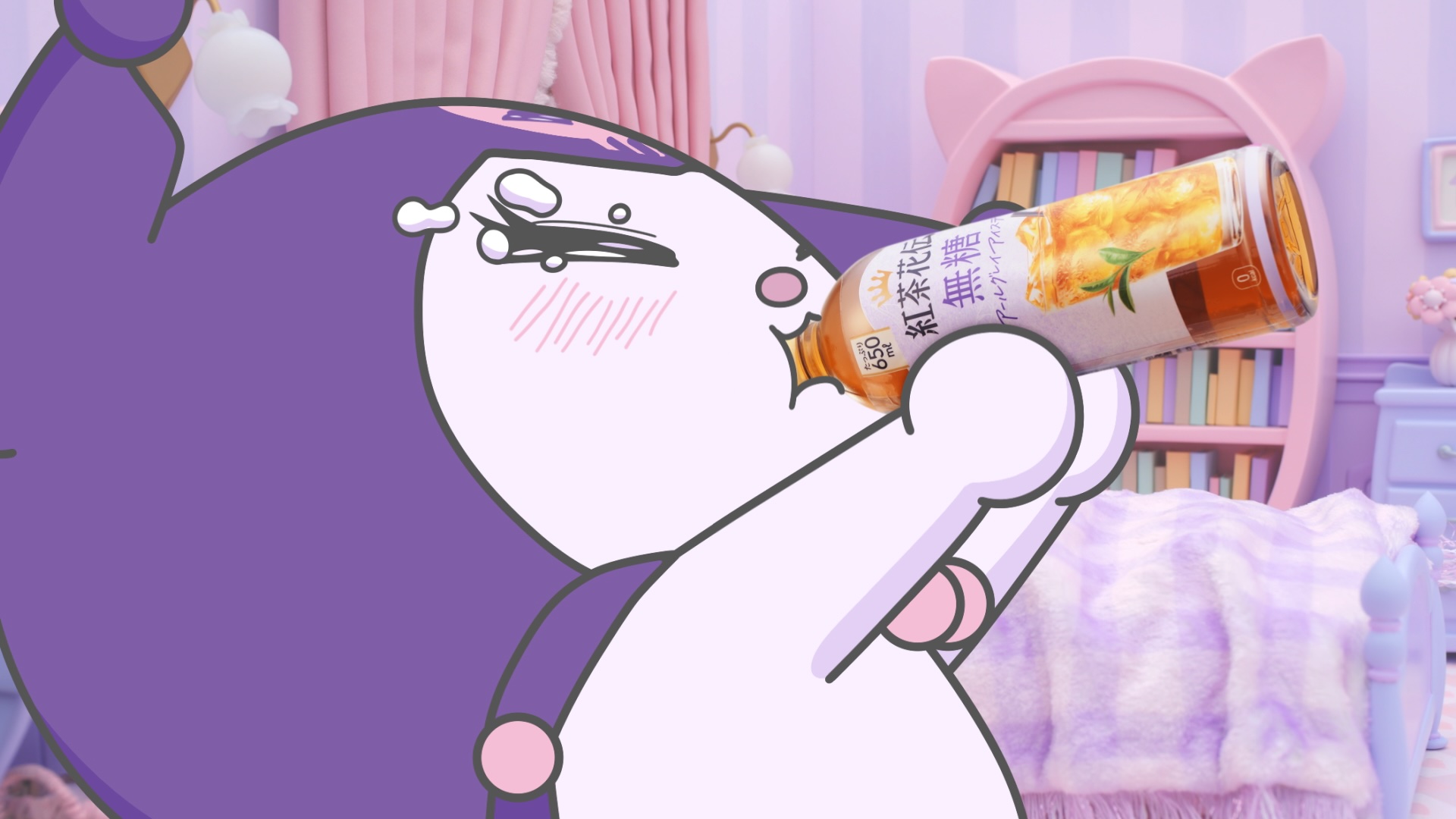 3月2日(月)から放映となる新CMでは、株式会社サンリオの人気キャラクター「クロミ」が登場。CMでは「クロミ」の要望に応えた子分の”バク”が「紅茶花伝 無糖 アールグレイアイスティー」を差し出します。「紅茶花伝 無糖 アールグレイアイスティー」を飲んだ「クロミ」が、その心地よいすっきりとした味わいに思わず「ちょーどいい~!」と叫びリフレッシュする様子を、可愛らしくキャッチーに描きます。