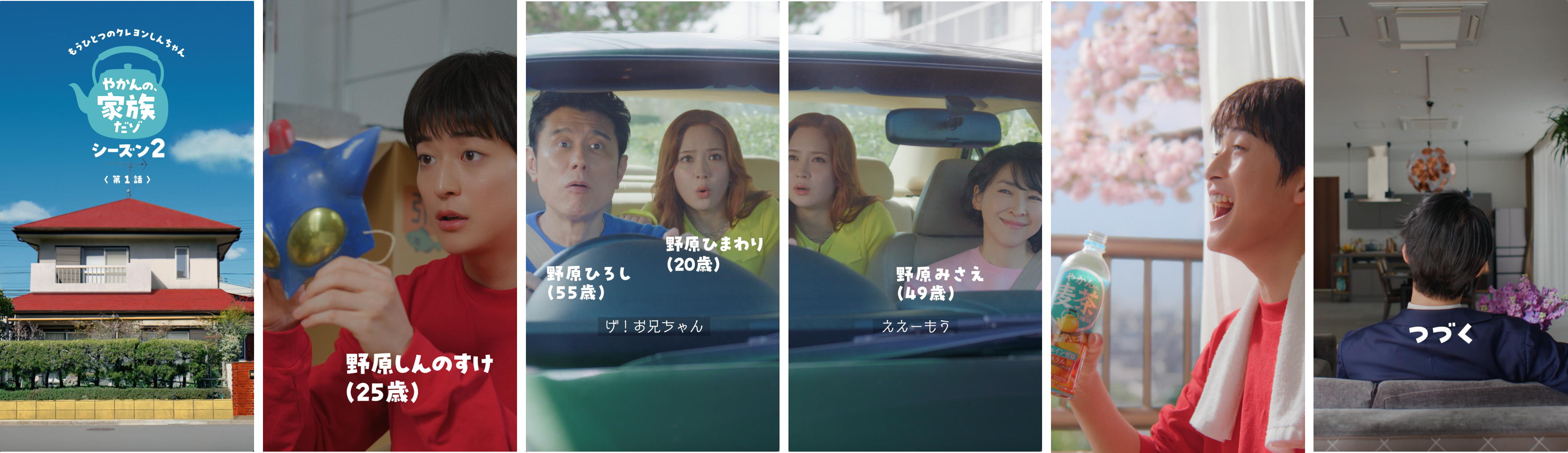 コカ・コーラシステムは、やかんで煮出したような本格的な麦茶の味わいの「やかんの麦茶 from 爽健美茶」(以下「やかんの麦茶」)において、実写化ショートムービー「もうひとつのクレヨンしんちゃん やかんの家族だゾ!」(以下、「やかんの家族だゾ!」)シーズン2を4月6日(月)より公開します。