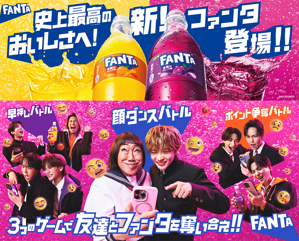 さらに、2フレーバーのリニューアルにあわせて、友達と楽しみながら参加できるゲーミフィケーション要素を取り入れたデジタルキャンペーンを4月13日(月)よりスタート。TikTok、X、Coke ONを中心に、「ファンタ」のはじけるおいしさとワクワクするブランド体験を発信していきます。