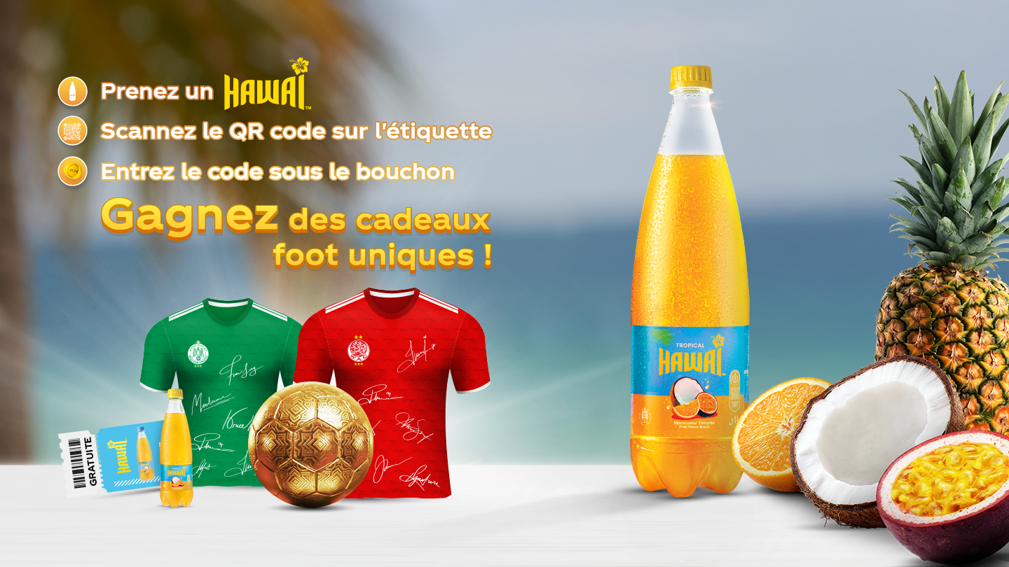 Prends ton Hawai , scanne le QR code et tourne la roue de la fortune pour tenter de gagner des Tshirts de tes clubs préférés et des bons de boissons gratuits.