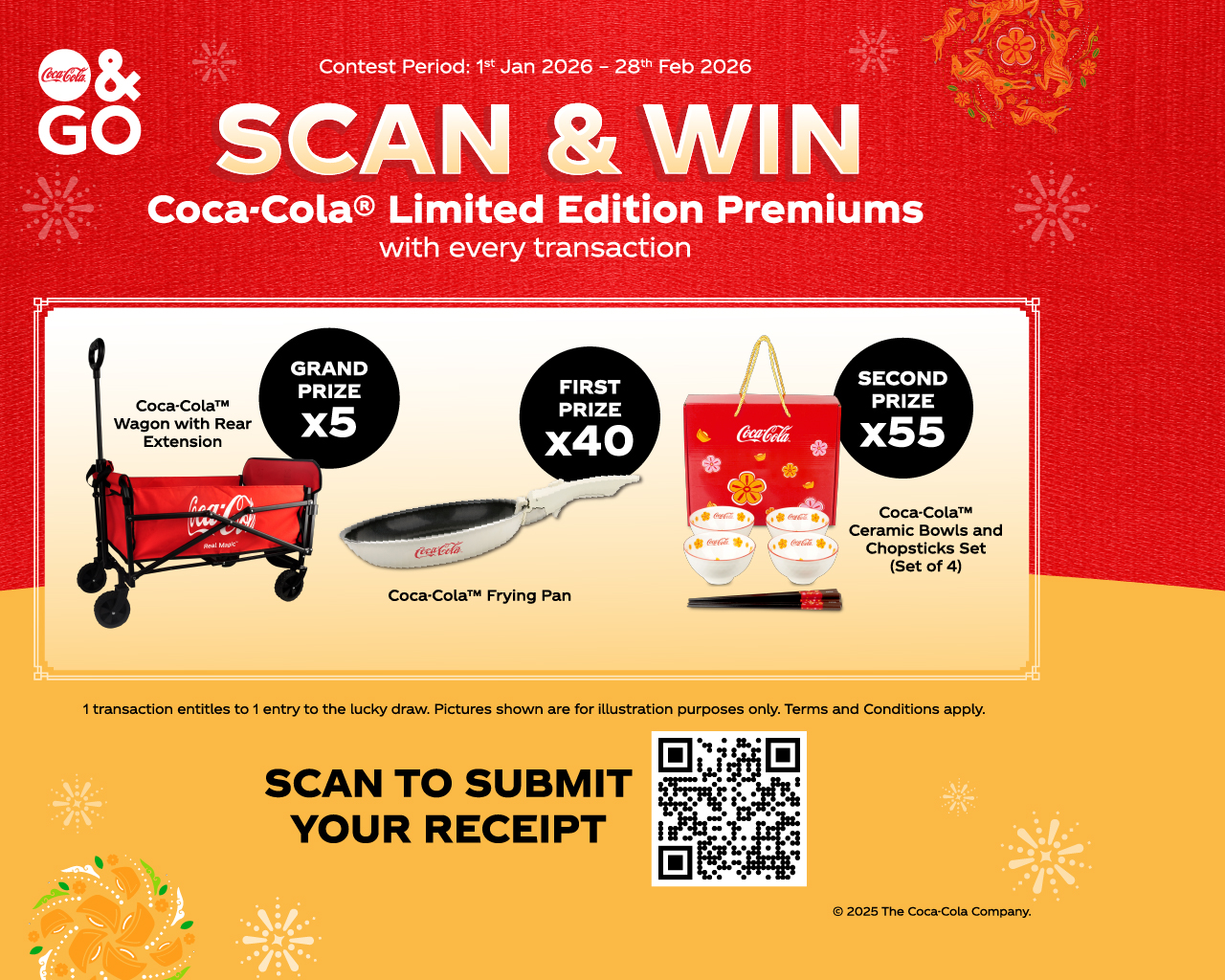 Scan, buy & win limited edition Coca‑Cola premiums when you purchase from Coke&Go cooler.