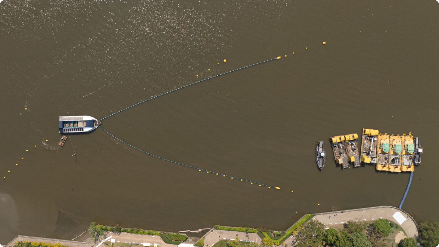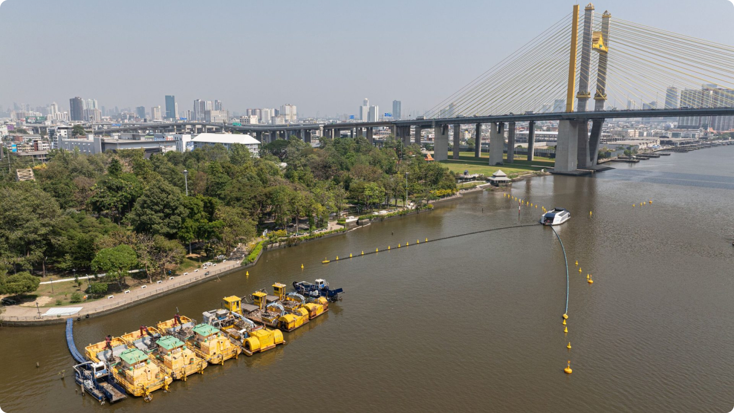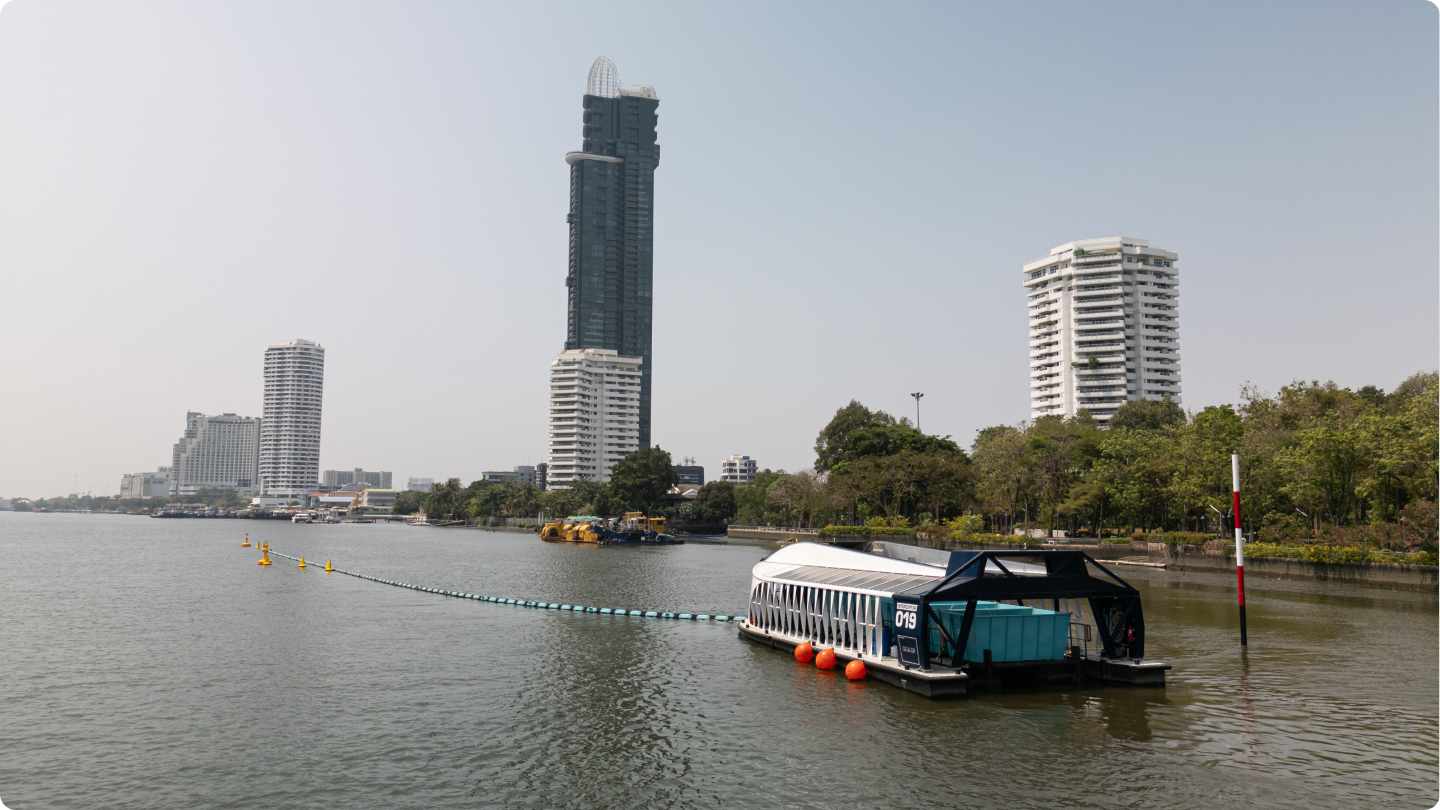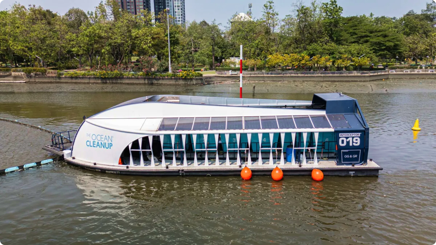 ถือเป็นความร่วมมือในการทดสอบนวัตกรรมดักจับขยะ Interceptor เรือพลังงานแสงอาทิตย์ที่มีแขนทุ่นลอยด้านข้างเพื่อช่วยดักพลาสติกที่ลอยอยู่บนผิวแม่น้ำเจ้าพระยาไม่ให้ไหลลงสู่มหาสมุทร