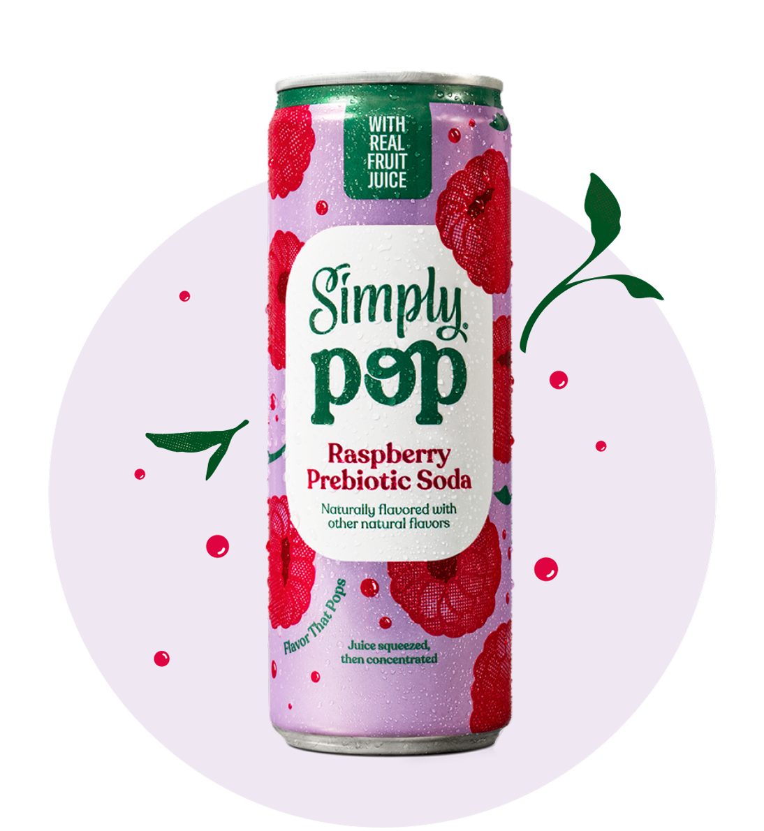 Prebiotic sodas are carbonated drinks made with prebiotics. Simply Pop includes 6g of fiber in each of its five flavor varieties.
